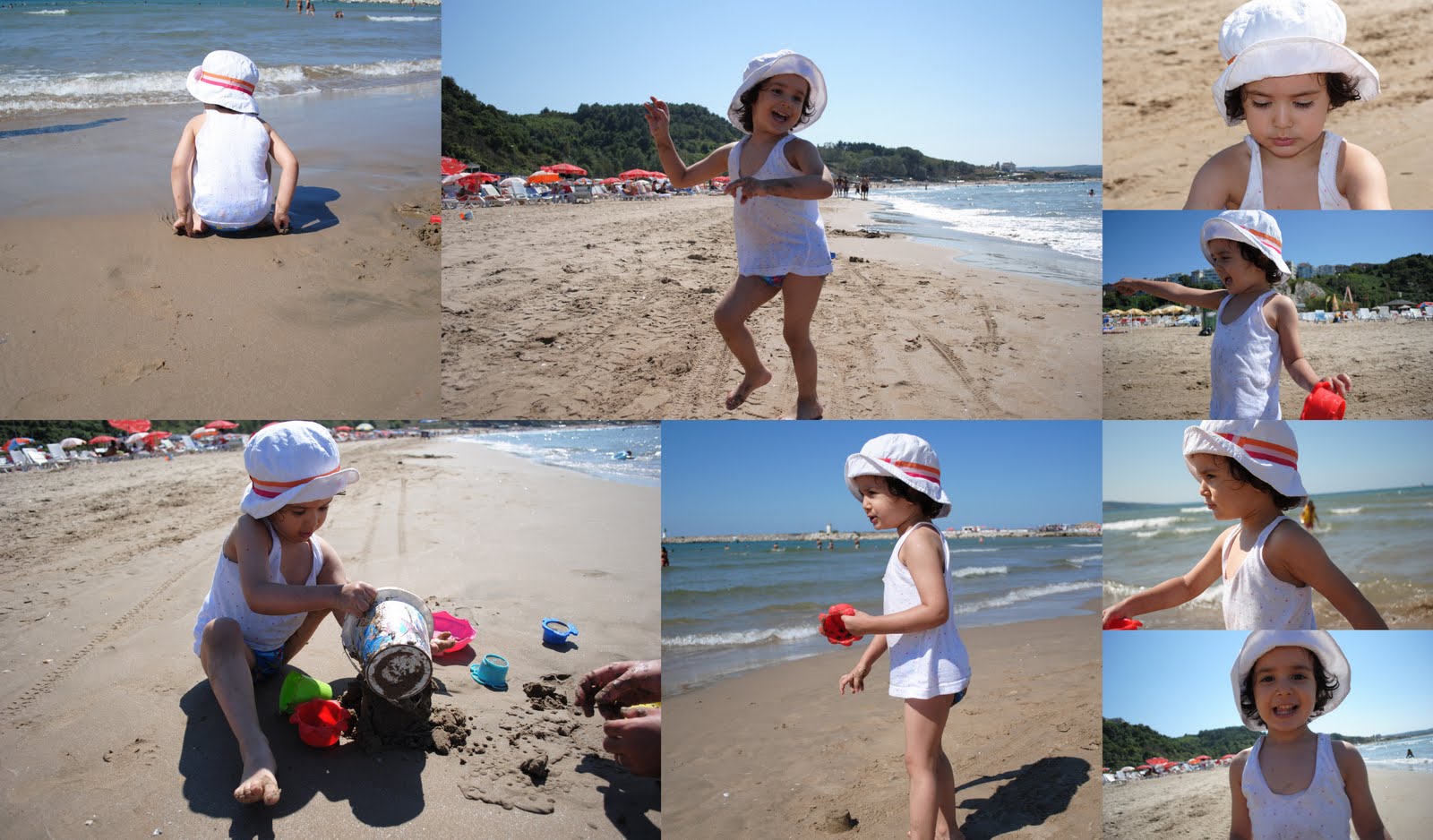 Bir türlü Kaş'a gitmek kısmet olmayınca çok istediğin denize gittik dün... Şile'ye götürdük seni... Ve ilk kez denize girmiş oldun :)) Televizyonda , dergide deniz görünce bizde oraya gidelim diyordun hep... Giderken ve dönerken arabada uyudun , rahat bir yolculuk oldu... Denizdede bol bol kudurdun.... Gerçekten yüzebilecek gibi nasıl atıyordun kendini denize... Aldığımız kolluklarıda inatla takmadın , kolluğa da bilek diyorsun:)) Yaptığımız kaleleri dalgalar bozunca , dalgalara kızdın gelme dalga diye bağırıp , dalgaylada kavga ettin :)) Huysuz cadım benim.... Çok rüzgarlıydı hava , denize girer girmez dudakların mosmor oluyordu , hasta olursan diye korktum ama yine de bol bol yüzdük beraber , bol bol kumla oynadık.... Çok eğlendin , çok eğlendik... İnşallah deden Kaş'tan dönünce bu kez gidebilirsek Kaş'a , orda daha çok eğleniriz ....